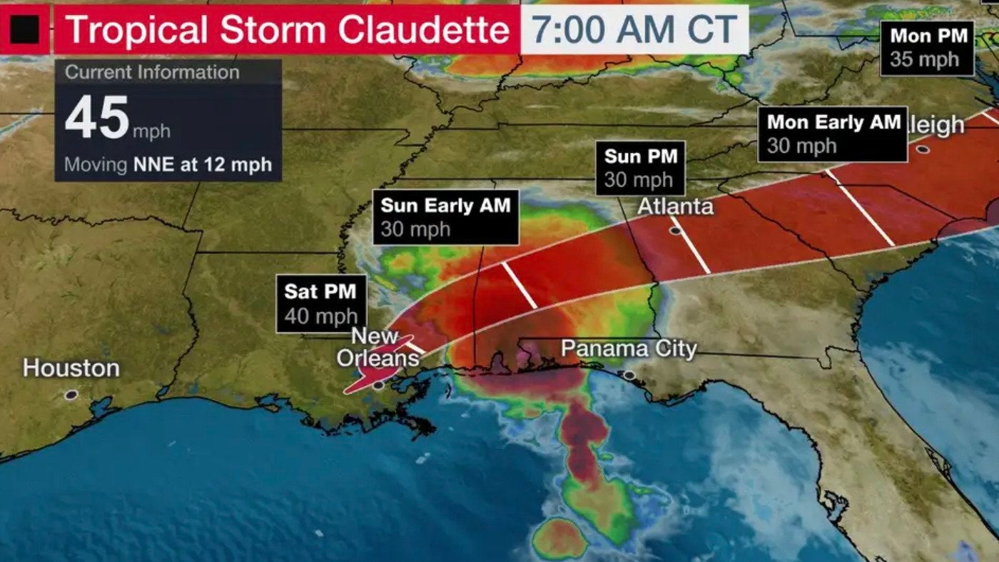 Tropical Storm Claudette : 1 : 6/19/2021 9:00:00 am (coordinated universal time).. Seven million people from louisiana to florida panhandle under storm warnings as 'unpredictable' 45mph weather system which could form into tropical storm claudette barrels towards gulf coast. (wfla) — potential tropical cyclone finally organized into tropical storm claudette just as it moved onshore in it is a minimal tropical storm with winds of 45 mph. Tropical storm claudette forecast track (national hurricane center). Tropical storm claudette has formed and is expected to bring heavy rain, strong winds and an isolated tornado threat across. Tropical storm claudette has formed southwest of new orleans and threatens the u.s.